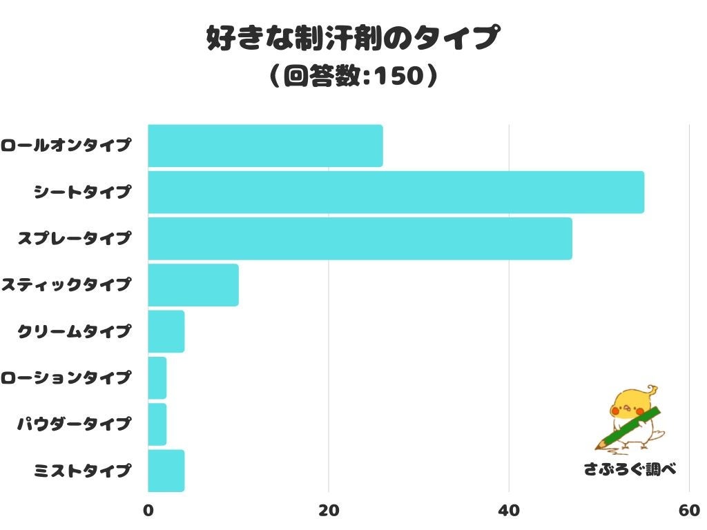 好きな制汗剤のタイプ1位は「シートタイプ」が選ばれました。