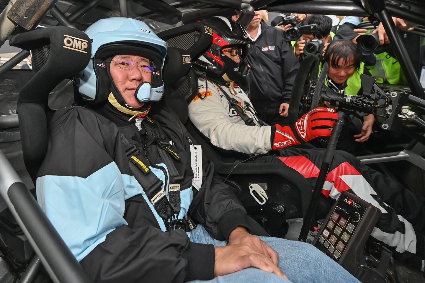 Hyundai Motor Groupの鄭義宣(チョン・ウィソン)会長とトヨタの豊田章男会長は本フェスティバルに積極的に参加しました。観客の拍手が鳴り響く中、鄭会長はYaris WRCを操る豊田会長と一緒に、モリゾウならではのドーナツターンを含む強烈なパフォーマンス走行を披露しました。パフォーマンス走行後、2人は一緒にステージに上がり、近くにいたファンに感謝の言葉を述べ、握手を交わして感想を語りました。