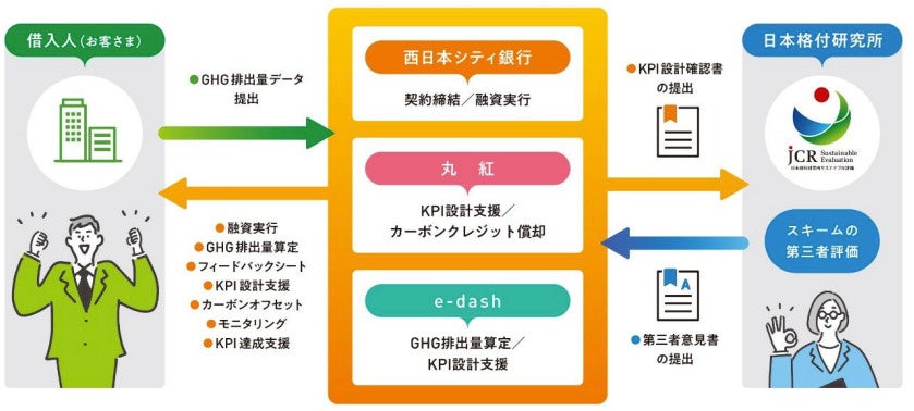 株式会社西日本シティ銀行(頭取 村上 英之、以下「西日本シティ銀行」)と丸紅株式会社(代表取締役社長 柿木 真澄、以下「丸紅」)、e-dash株式会社(代表取締役社長 山崎 冬馬、以下「e-dash」)は、3社が共同開発した脱炭素インパクトファイナンス※1『フォレストライク』(以下「本商品」)の取扱いを開始しますので、お知らせします。