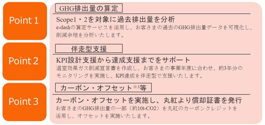 ※3 本商品のカーボン・オフセットサービスはボランタリーなカーボン・オフセットサービスであり、温対法(地球温暖化対策の推進に関する法律)、省エネ法(エネルギーの使用の合理化および非化石エネルギーへの転換等に関する法律)等への適用はしておりません。