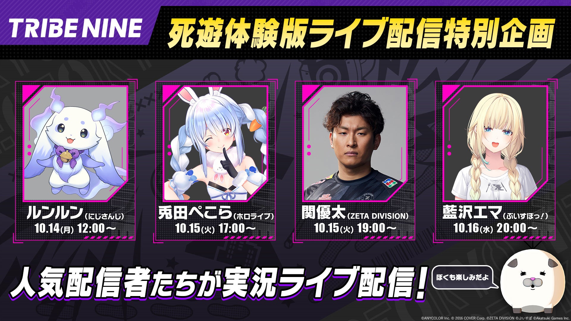 人気ストリーマーと人気VTuberたちが「死遊体験版」を実況配信いたします。「#トライブナイン」をつけて、「死遊体験版」を一緒に楽しみましょう!