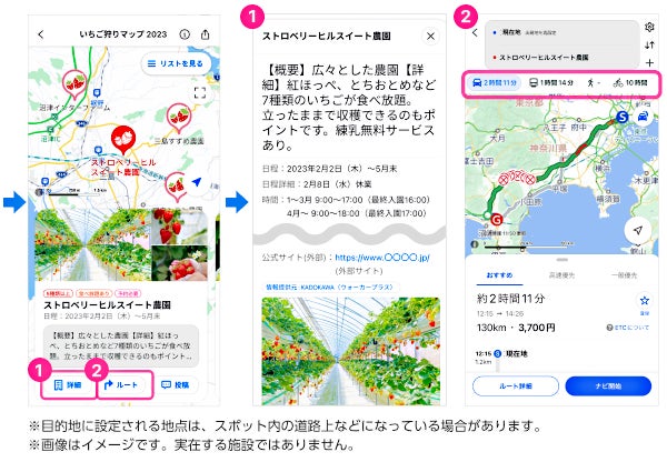 ~ 地図上で、スポットの詳細情報や写真、ルート検索などがワンタップで確認可能に ~ ~ 今後、食べ放題や持ち帰りの有無、いちごの種類などの情報も表示 ~