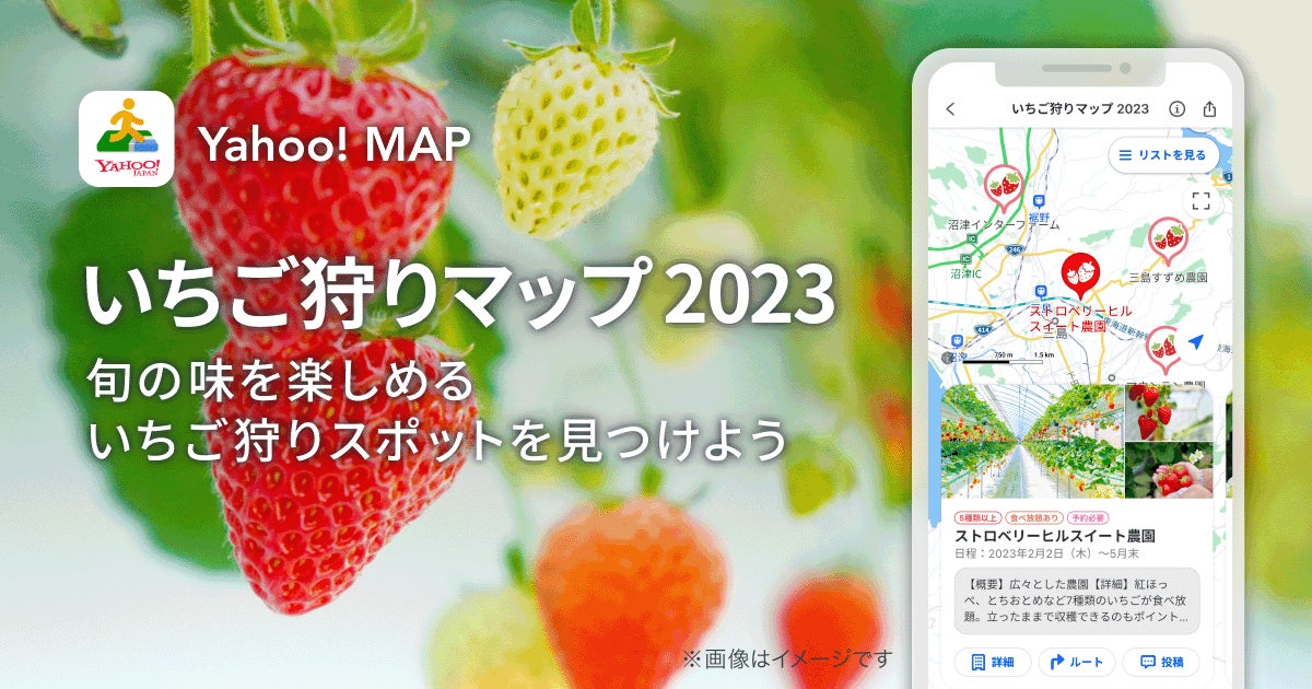 ヤフー株式会社(以下、Yahoo! JAPAN)が提供する「Yahoo! MAP」(iOS版、Android版)は本日、全国約300カ所のいちご狩りスポットが地図上で確認できる「いちご狩りマップ 2023」(以下、本機能)の提供を開始しました(※1)。
