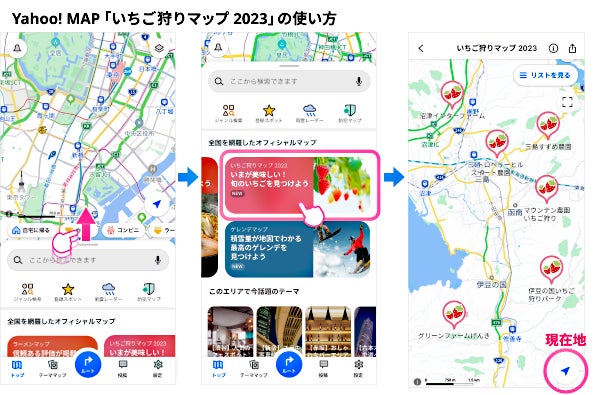 ■Yahoo! MAP 「いちご狩りマップ 2023」の使い方