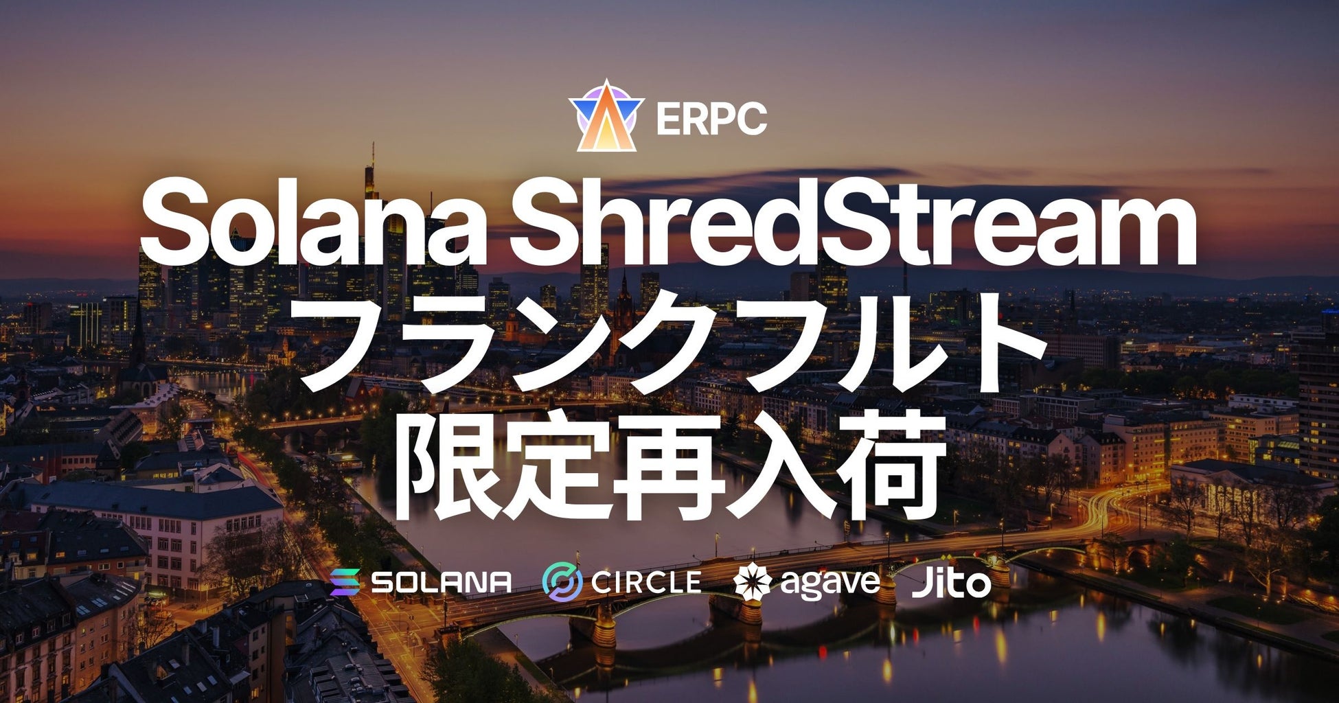 ERPC、Solana 専有 ShredStream 一番人気のフランクフルトリージョンにて限定再入荷