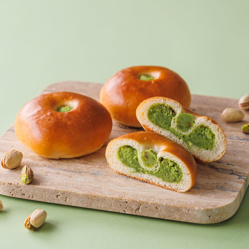 ローストしたピスタチオ入りの香ばしく風味豊かなピスタチオあんを、酒種生地で包みました。