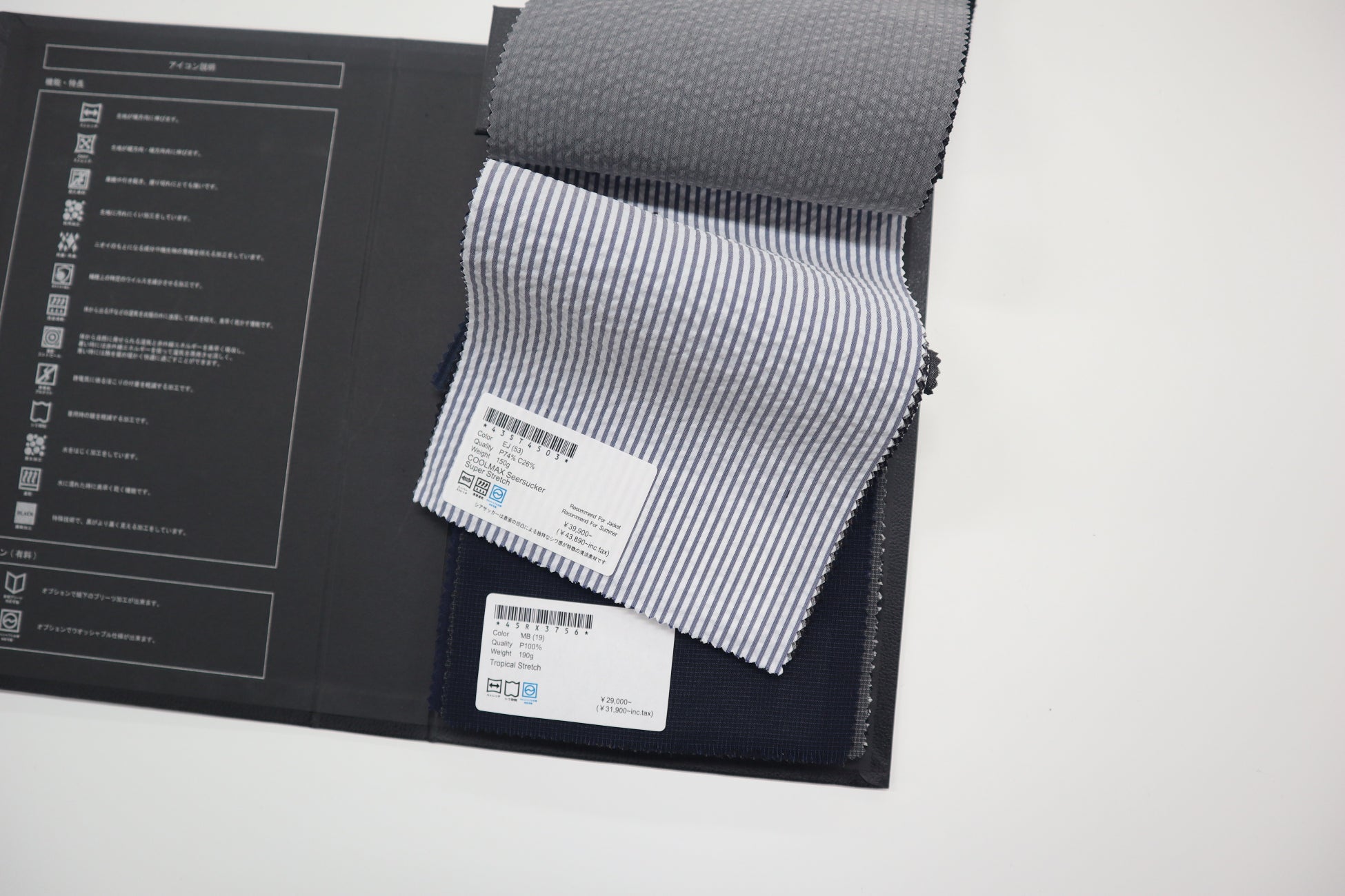インポート生地(リネン素材 税込76,890円、モヘヤ混素材 税込98,890円)