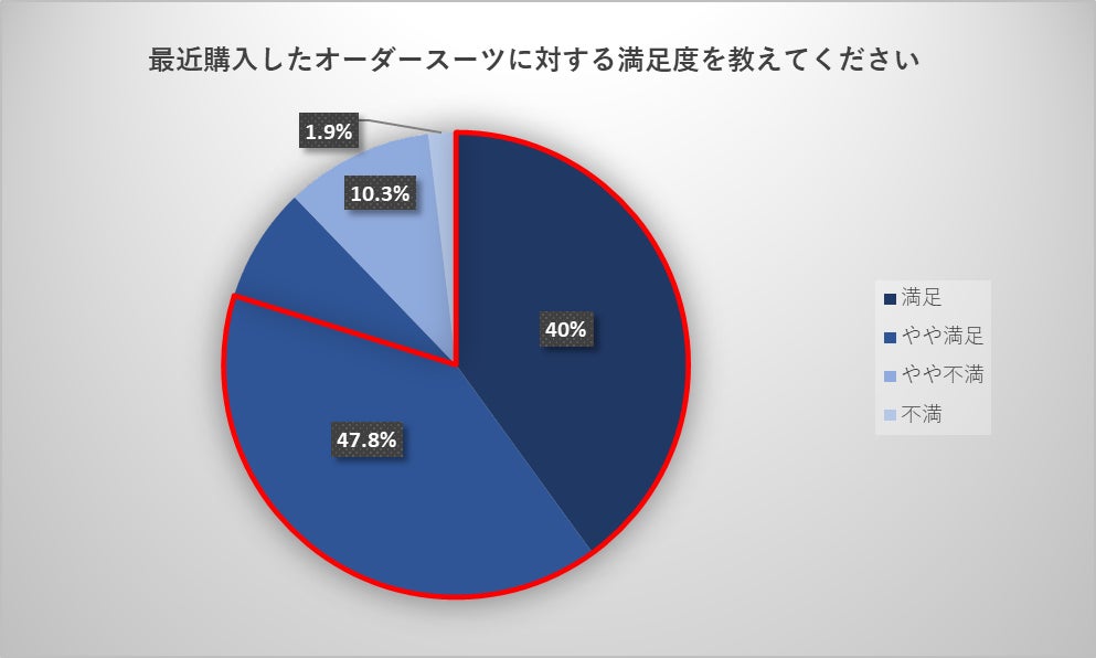 ・オーダースーツを購入されたことがある方の満足度は「満足」「やや満足」を合せて87.8%と、自分に合ったサイズ感や希望する機能性を選択できるオーダースーツへの満足度が高いことが分かります。