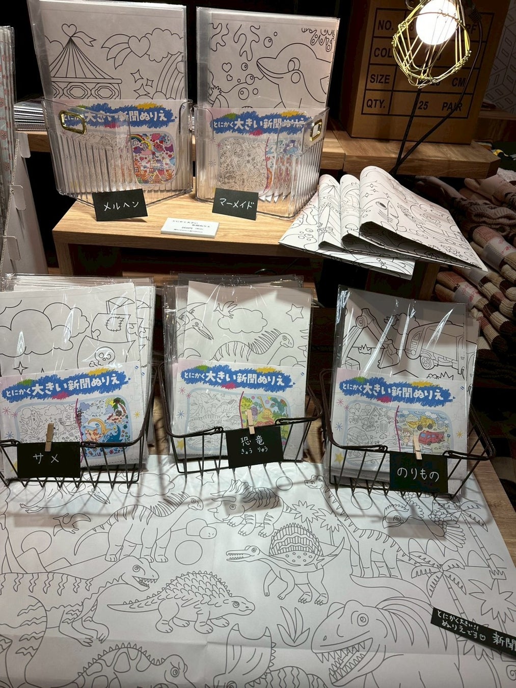 また「とにかく大きい新聞ぬりえ」は、新聞一枚分のサイズを活かした、ダイナミックに楽しめる大きなぬりえです。過去の販売イベントは他にはない大きさのぬりえにファミリー層から大きな反響がありました。サメ・乗り物・マーメイド・メルヘン・恐竜の全5種類を用意し、子どもはもちろん、大人も一緒になって楽しめる、迫力ある大きさが魅力です。