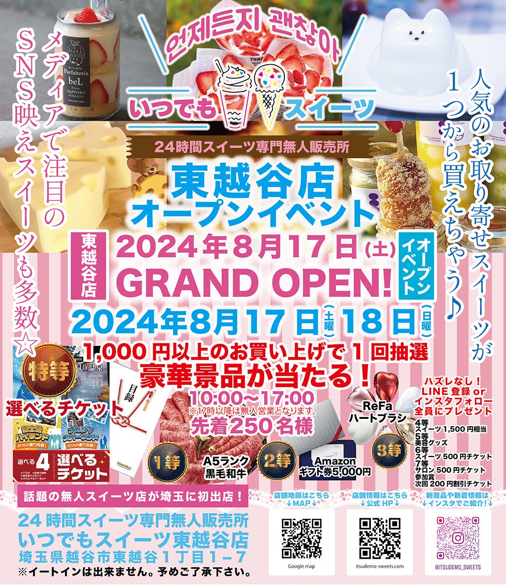 メディアで話題の『いつでもスイーツ東越谷店』が埼玉県越谷市に新店舗出店!