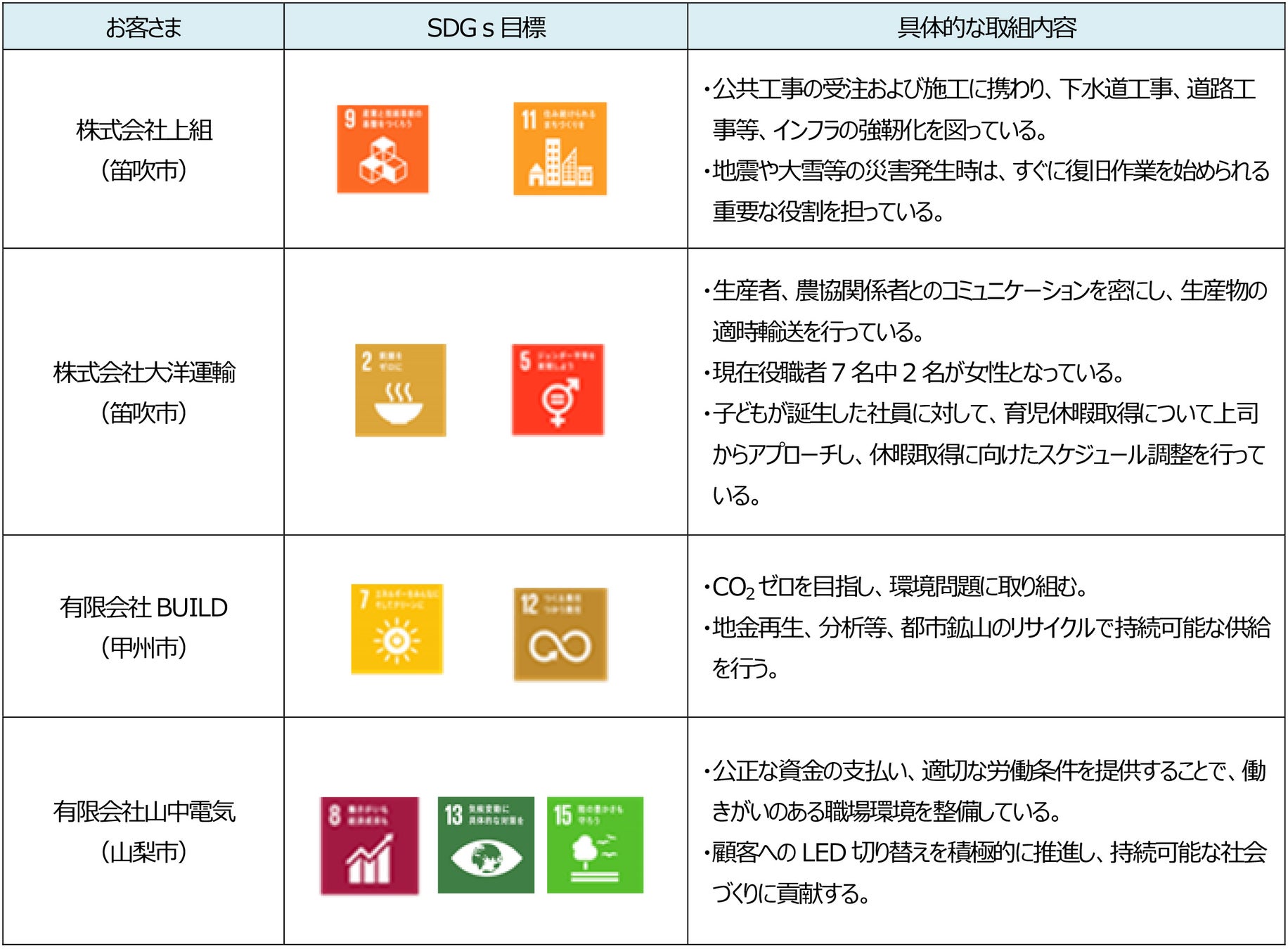 株式会社山梨中央銀行(頭取 古屋 賀章)は、 SDGsの目標達成に資する取組みを積極的に行っているお客さまにご利用いただける「山梨中銀SDGs応援ローン」を、2024年11月中に10件実行しました。