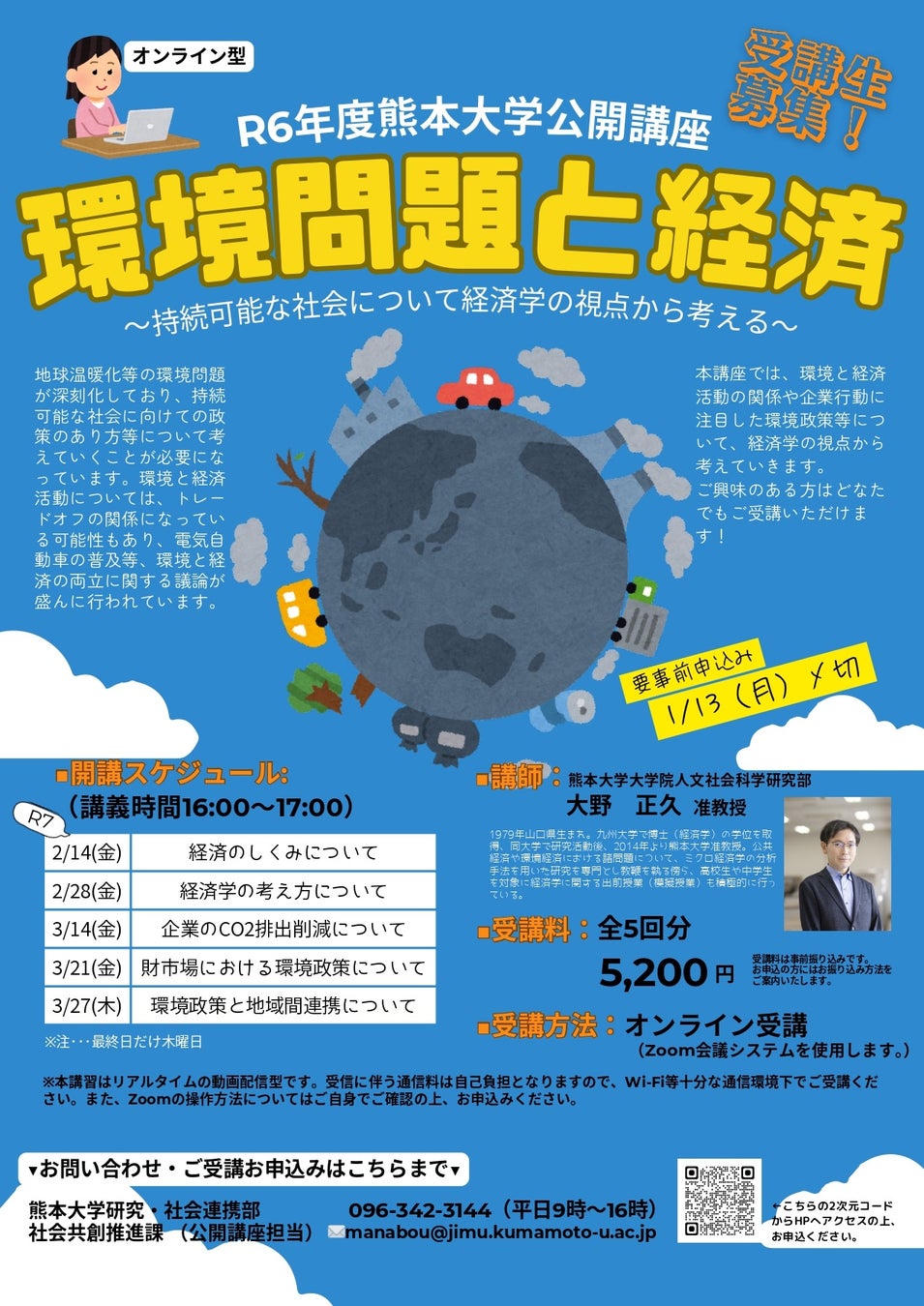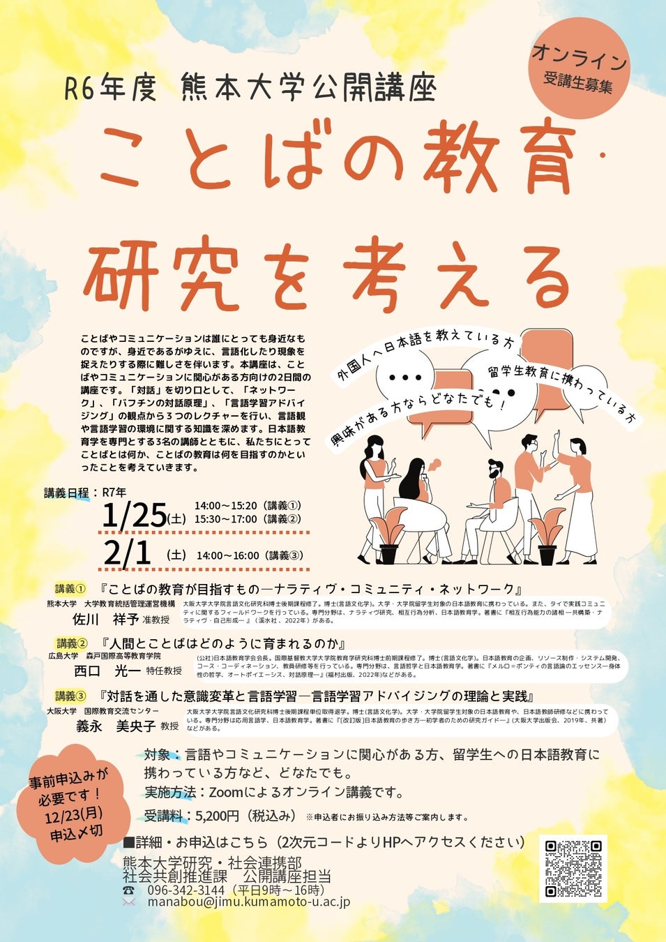 熊本大学公開講座担当まで、メール(manabou@jimu.kumamoto-u.ac.jp)もしくは