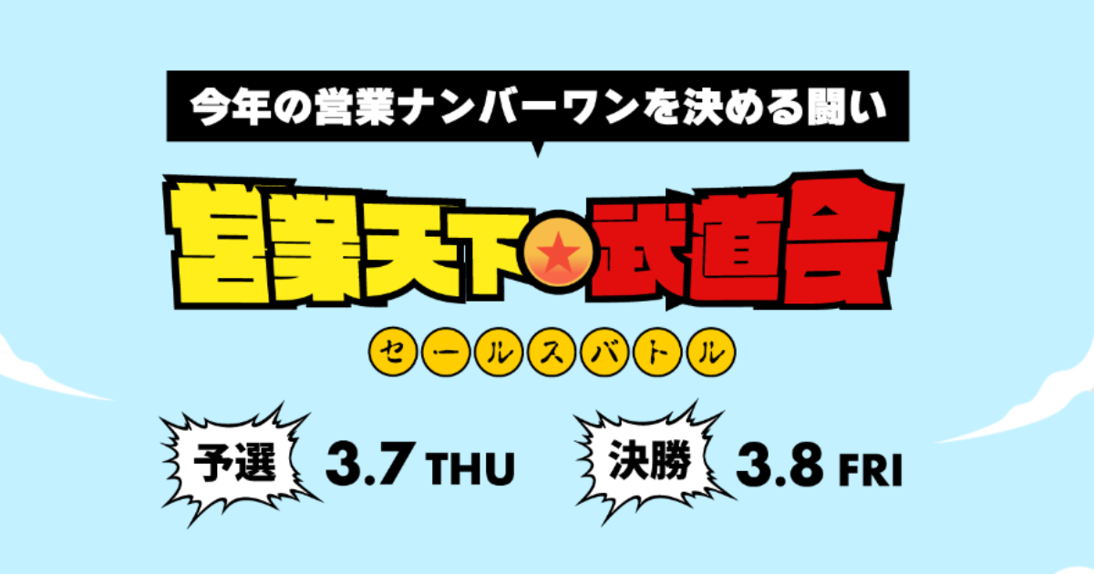 今年の営業No.1を決めるリアルイベント「営業天下一武道会」を見届ける一般観戦者の募集を開始!