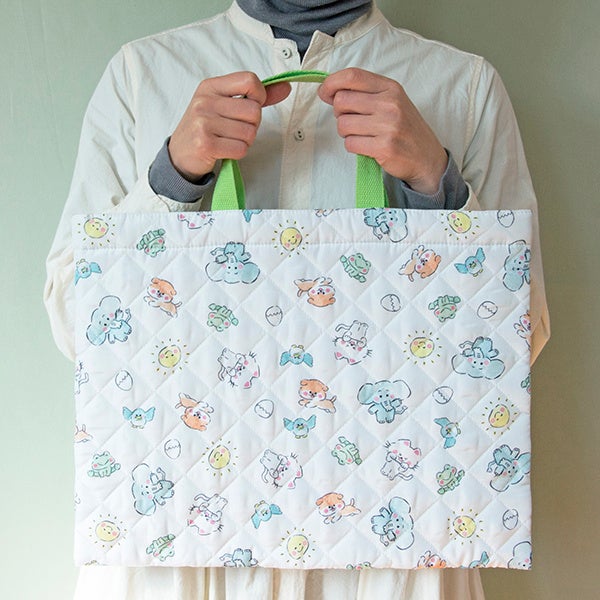 第一弾でお披露目した全18種類は、靴下にハンドタオル、アクリルキーホルダーなど、お出かけがもっとごきげんになるグッズでした。今回はクッションとフロアマットのインテリアグッズが5種類と、親子で共有して楽しめるバッグ類3種が登場です。