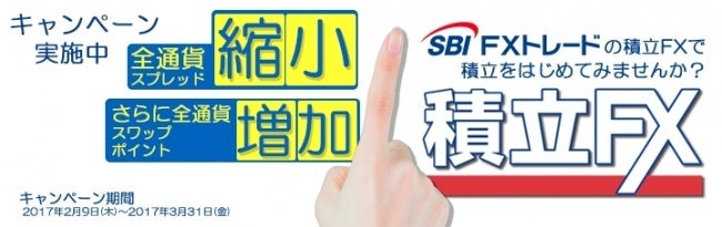SBI FXトレード株式会社(本社:東京都港区、以下、「当社」)は、「積立FX」今がチャンス!キャンペーンを2017年2月9日から、実施いたしますのでお知らせいたします。