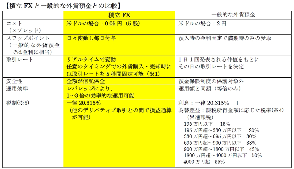当社提供サービスの一つである「積立FX」は、一般的な外貨預金と比べ取引コストを抑え、お客様の投資スタンスに合わせて定期的な長期運用を実現する画期的な商品サービスとして、2015年12月の開始以来、お客様に大変ご好評をいただいております。