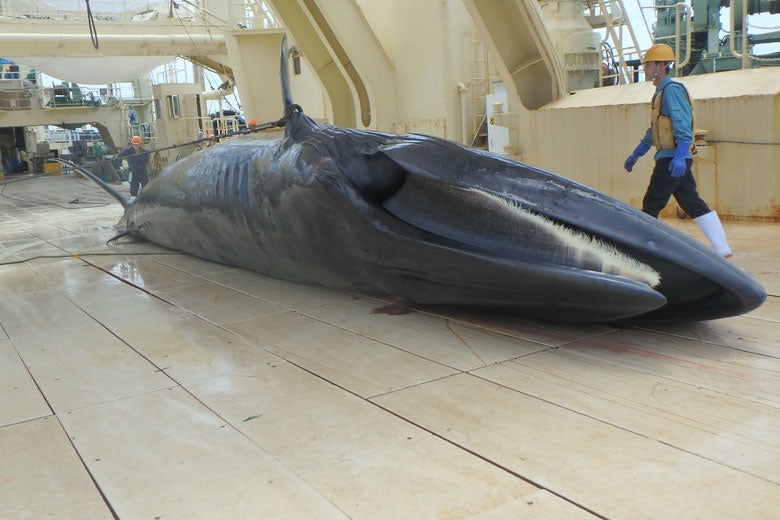 ミンククジラ、イワシクジラと並び近海で獲れます。光が届く水深200mまでの海を泳ぎます。イワシやオキアミを食べ、寿命は約60年。主に熱帯域から温帯域にかけ生息していますが、夏が近づくと、餌を求めて日本の海に回遊してくると見られています。漁は東北沖の排他的経済水域内で行われます。
