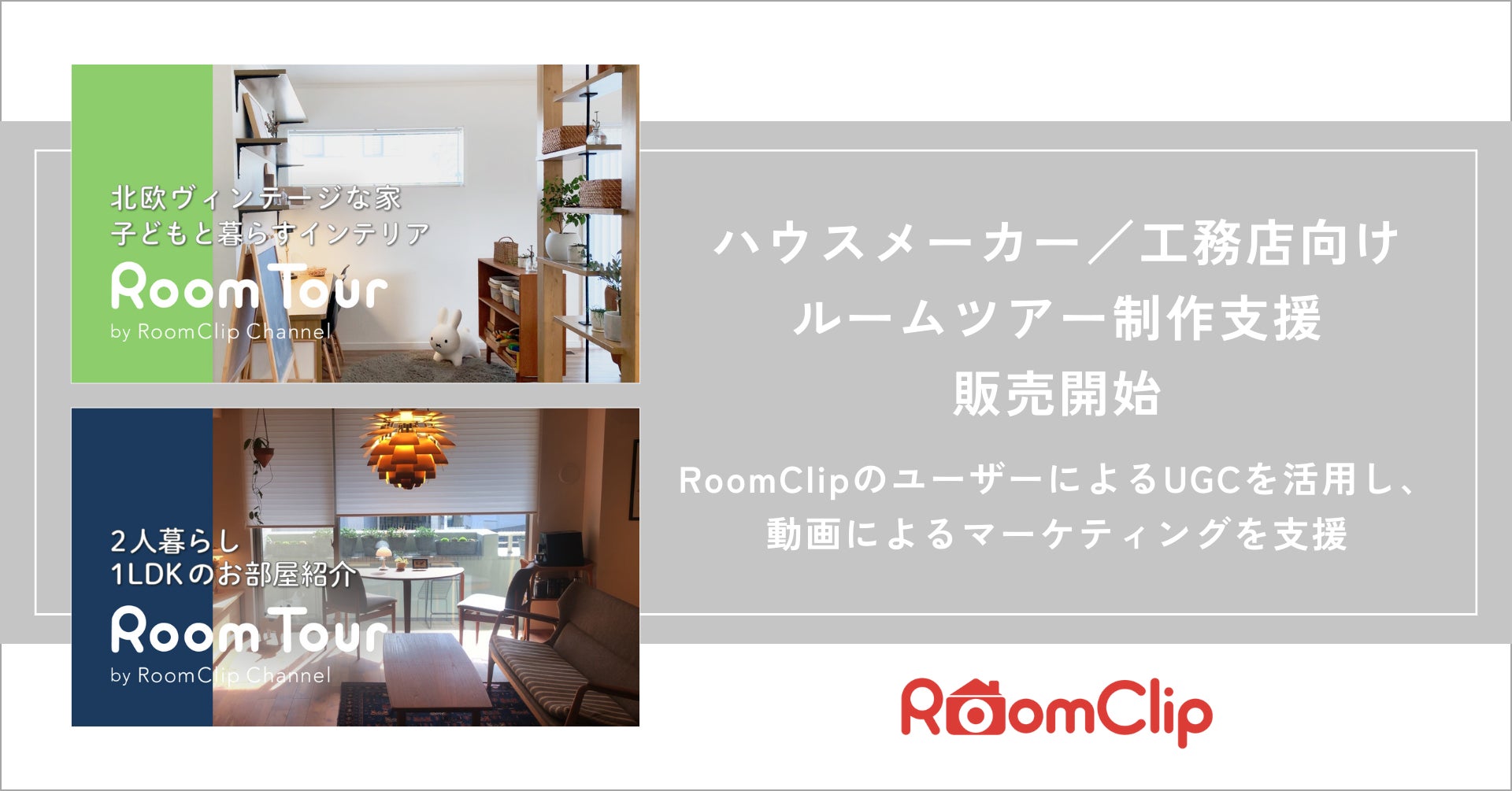 ルームクリップ株式会社(本社:東京都渋谷区、代表取締役CEO:髙重正彦、以下ルームクリップ)は、ハウスメーカーや工務店向けに、物件の間取りや設備、内装などの魅力をリアルな動画としてまとめた、ルームツアー動画の制作支援プランの販売を開始します。