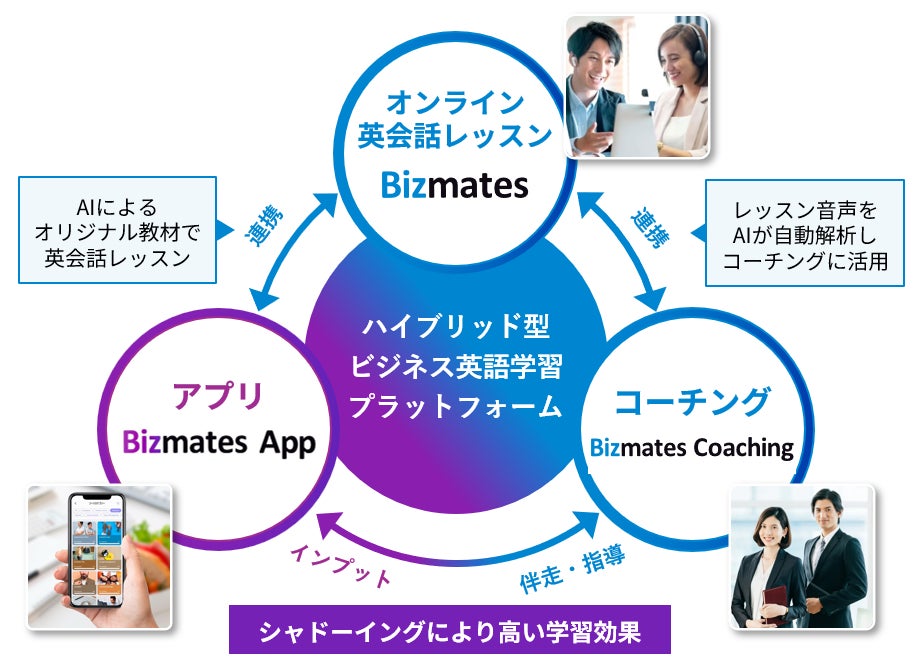 ビズメイツは、創業当初より、豊富なビジネス経験を持つ外国人講師によるオンライン英会話「Bizmates(ビズメイツ)」を軸に、専属の日本人コンサルタントが学習設計から進捗管理、モチベーションの維持までを個別に支援する「Bizmates Coaching(ビズメイツコーチング)」を展開してきました。