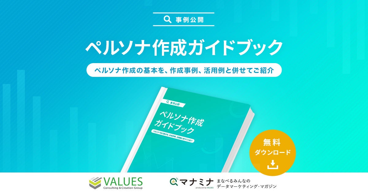 インターネット行動ログ分析によるマーケティング調査・コンサルティングサービスを提供する株式会社ヴァリューズ(本社:東京都港区、代表取締役社長:辻本 秀幸、以下「ヴァリューズ」)は、運営するデータマーケティング・メディア「マナミナ」にて公開した記事から厳選し、マーケティングにおいて重要な、商品やサービスが想定する架空の顧客像「ペルソナ」作成のためのガイドブック「ペルソナ作成ガイドブック」を公開しました。