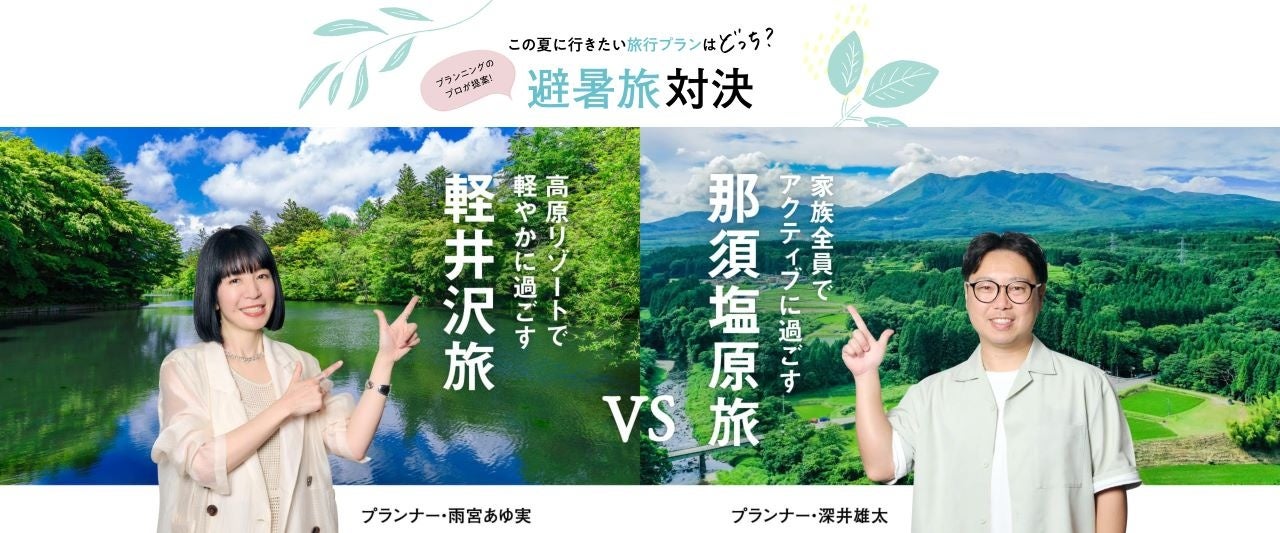 このたび「旅色」では、JR東日本が推進している「避暑旅」の認知度を向上させることを目的に、現役の旅行プランナー2名が提案する“避暑旅対決”を開催。猛暑が予想されるこの夏、涼しく快適に過ごせる旅先でのプランは必見です。ぜひ、JR東日本が推進している「避暑旅」とあわせて、旅の参考にしてみてください。また、どちらの避暑旅がしたくなったか、ぜひ特設サイトよりご投票ください。