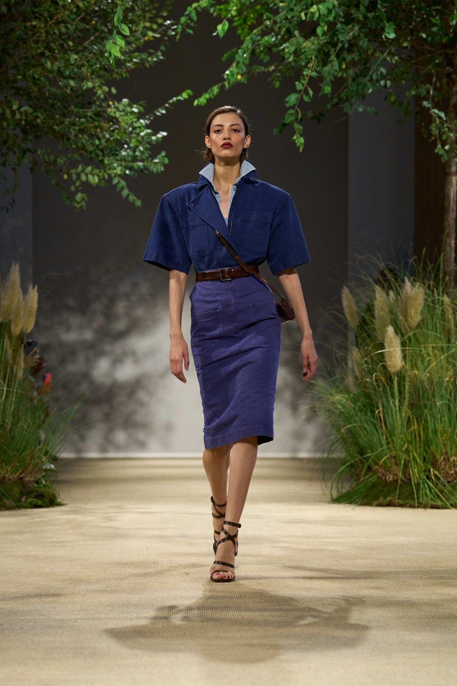 ダンガリー姿のデメトル(ギリシャ神話の豊穣の女神):昨今目にする写真やドキュメンタリー映画に登場するランド・ガールズは、牧歌的な風景の中にたたずみ、頬をバラ色に染めた女神のようです。彼女たちが身につけていたジョッパーズやサイレンスーツ(オールインワン)などのクラシックなワークウェアは、マックスマーラのユーティリティ グラマー(Utility Glamour)のインスピレーション源となり、スコップを入れるのに十分な大きさのポケットやポーチ、丈夫な補強ステッチ、頑丈なサスペンダーなど特徴的なパーツがあしらわれています。それは真夏のコテージの庭に咲き乱れるスイートピーの花のように、チャーミングな色彩の個性豊かなドリル素材で表現されています。もちろん、サンドカラーなどの中間色もあり、パーフェクトなデザインのトレンチコート、ゆったりとしたミリタリースタイルのジャケットやロンパースにも控えめな高級感が漂います。庭師のエプロンから着想を得たバックレス サンドレス、ギャバジンのストラップがあしらわれた3重シフォンのガウンは、強さと上品な雰囲気を併せ持つ、デイタイムからイブニングまで使えるアイテムです。