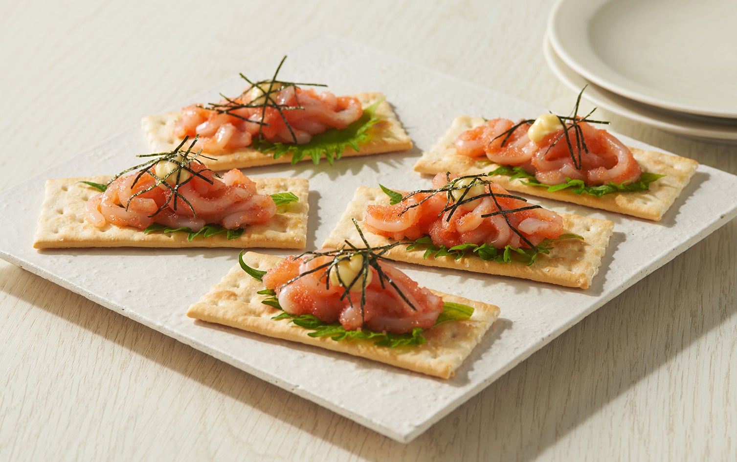 「ナビスコジャンボ ドリーム・ロト」キャンペーン開始に合わせて、「リッツ」「オレオ」「プレミアム」を使った簡単アレンジレシピを公開します。ビールが飲みたくなるこれからの季節に合わせて、おつまみにぴったりのさっぱりとした和のレシピを用意しました。2022年6月1日(水)よりキャンペーンサイトおよび店頭リーフレットにて紹介します。