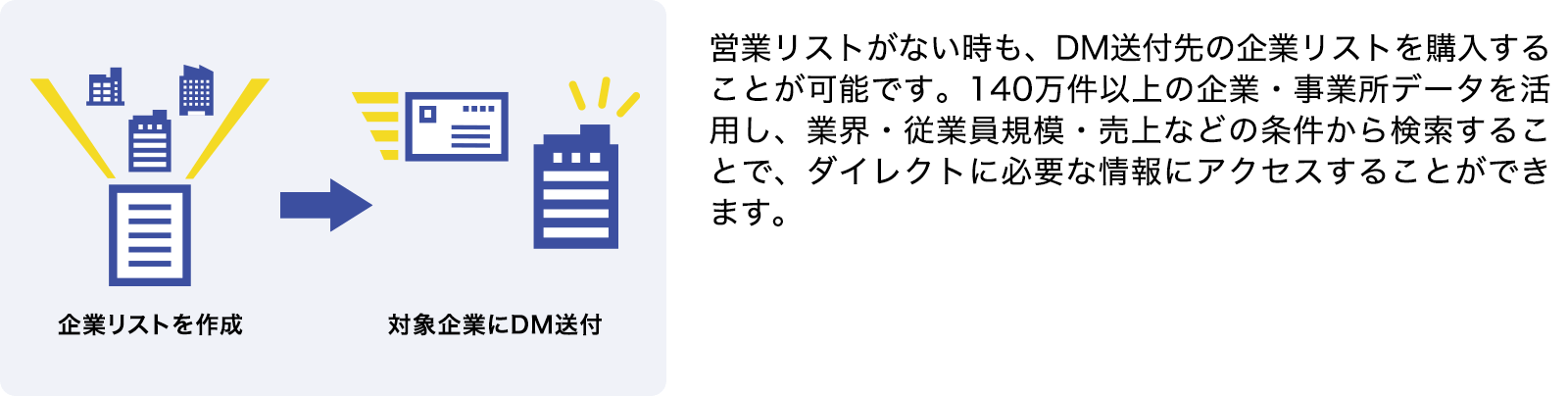 近年、急速な市場変化のもと、次の成長機会を探り新規事業が数多く立ち上がっています。企業が持続可能な売上成長を実現するためには、新規顧客の開拓が必須です。アプローチの手段はさまざまですが、各社共通し、出来る限りコストを抑えながら集客するための方法を模索しています。また、コロナ禍でビジネススタイルが変化し、対面営業に代わる新たなマーケティングの手法へと変革が求められています。コストを抑えつつ反響率が高い手法として、ダイレクトメールが注目を集めていますが、施策課題となっているのが、リストの存在でした。