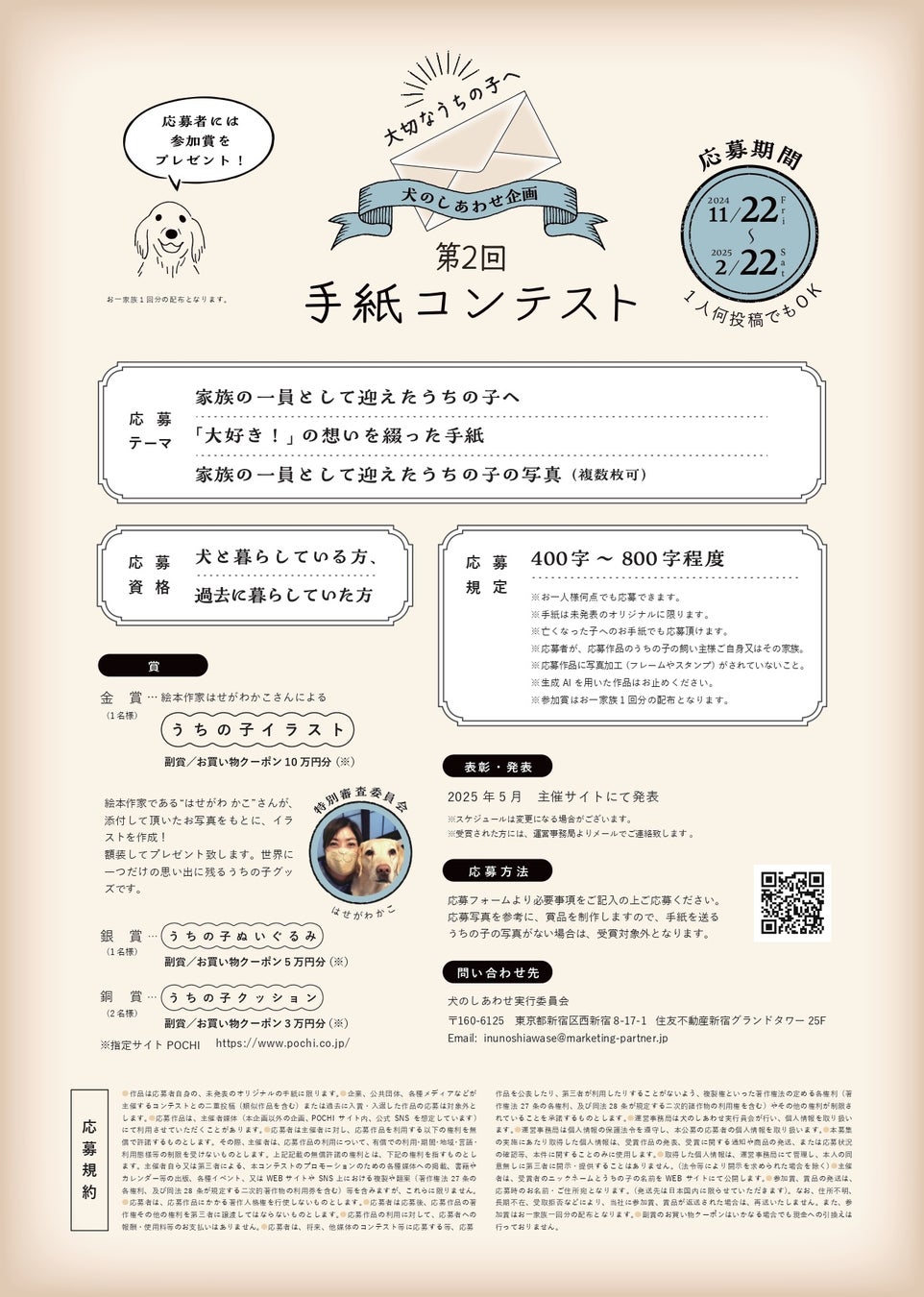 創業25周年を迎えた「ポチの幸せ(POCHI)」が、その節目に立ち上げた「犬のしあわせ実行委員会」。そこで企画された「手紙コンテスト」は、「犬とその家族の幸せな物語を集め、愛犬の大切さやありがたさを再認識し、より幸せな暮らしへと繋げるきっかけとしたい」そんな思いから実施されました。