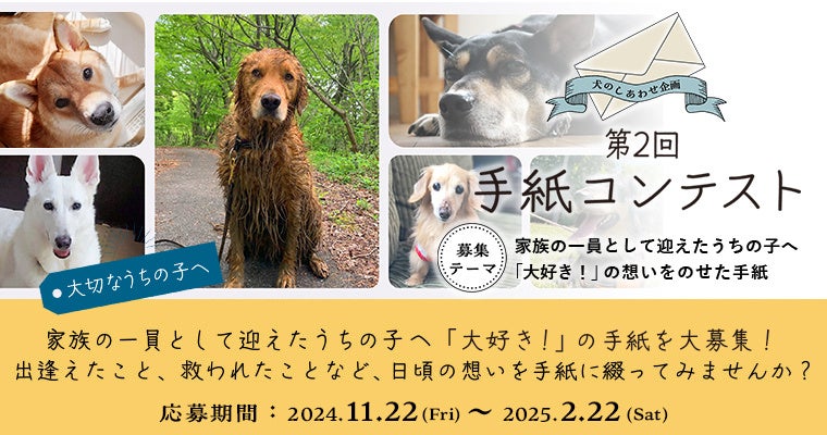 犬のしあわせ実行委員会は、11月22日(金)より「第2回 手紙コンテスト」を開始します。大切なうちの子(犬)へ向け、「大好き!」を伝えるラブレターを綴ってみませんか?