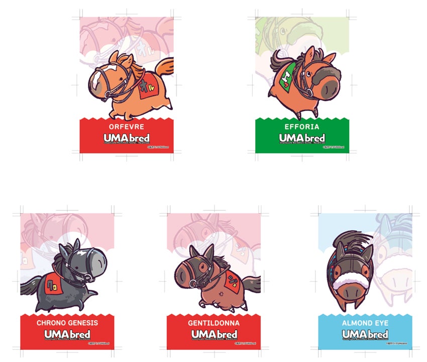 キービジュアル起用の5頭がそれぞれダイカットのステッカーになりました。