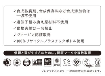 *オーガニック成分 †フェアトレード認定成分 ※天然精油