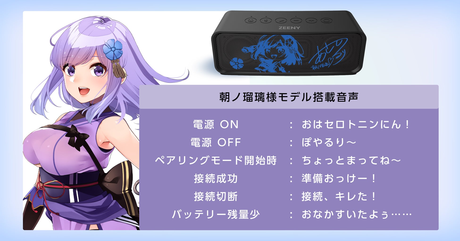 歌や声優などで活躍中の忍者系VTuber「朝ノ瑠璃」の録り下ろし音声搭載コラボレーションBluetoothスピーカー「Zeeny T★Box × 朝ノ瑠璃」の受注販売を開始