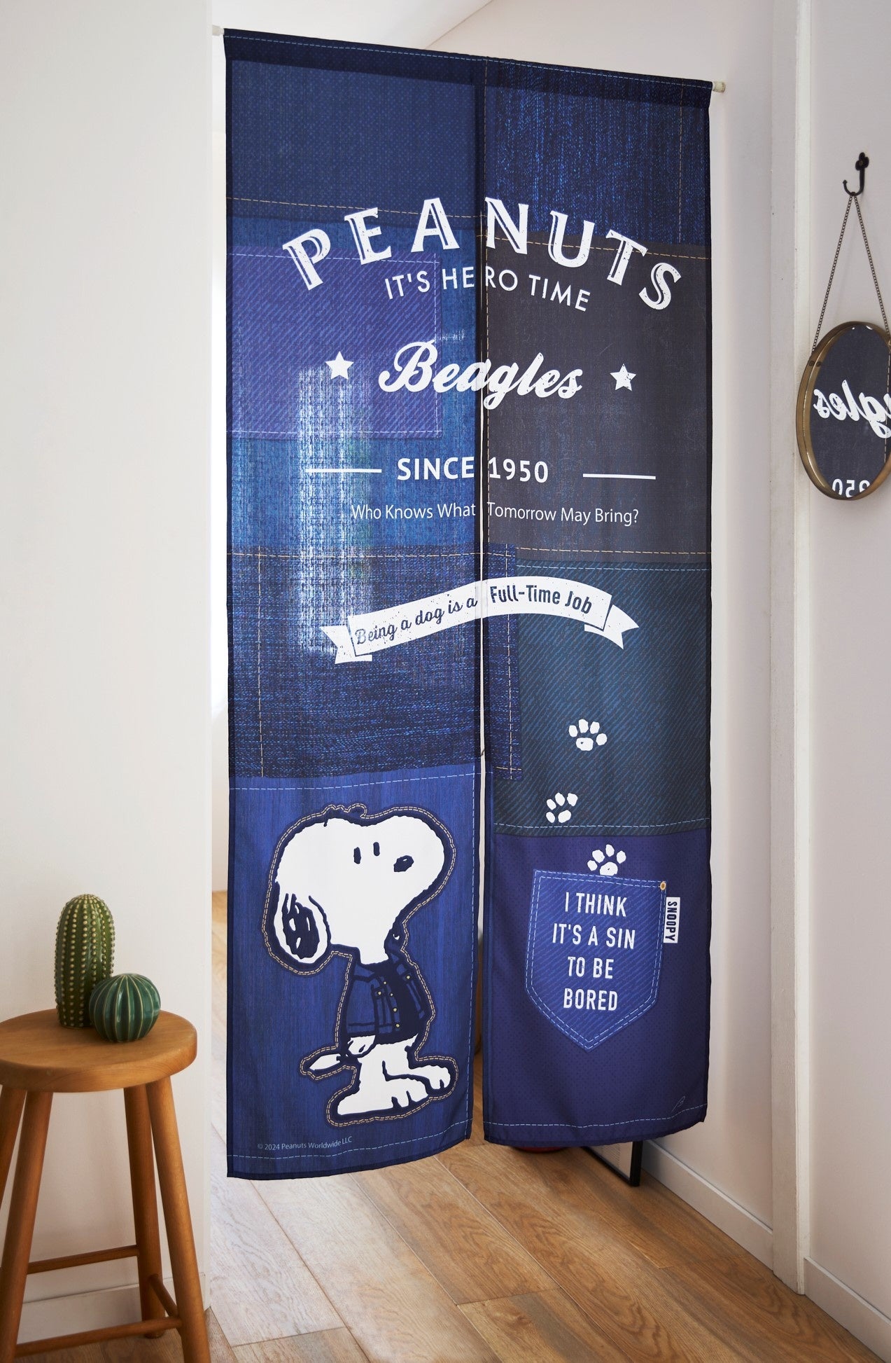 商品名/デニム風プリントのれん「スヌーピー」