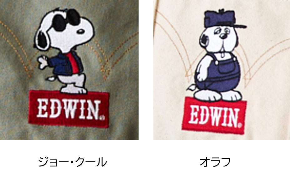 日本を代表するジーンズメーカー「EDWIN®」と「ピーナッツ」のコラボが実現。他では見られないオリジナルのスヌーピーがデザインされています。スヌーピーの他にもジョー・クールやオラフもデニムを着こなして登場します。