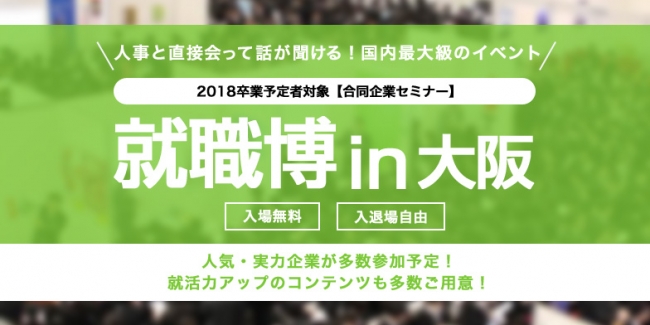 【優良企業発見イベント】日本最大級の合同企業セミナー「就職博」大阪で開催!