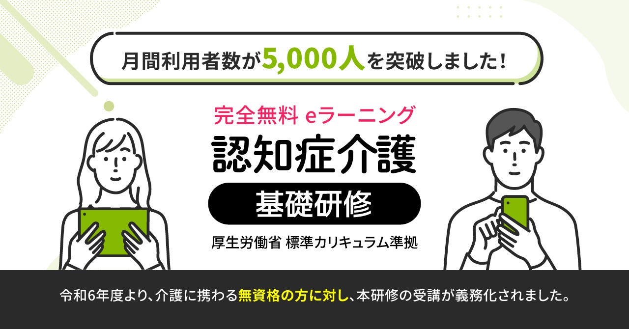 eラーニング型の「認知症介護基礎研修」が月間利用者数5,000人を突破!
