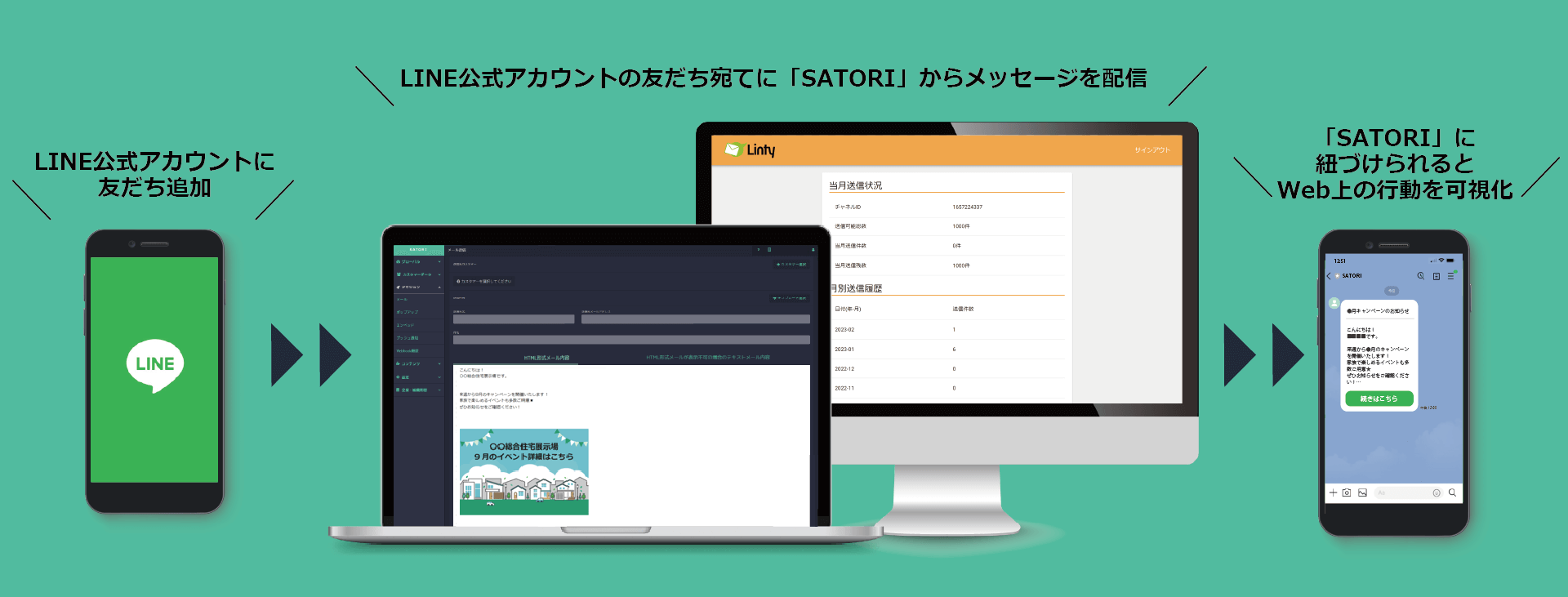 ※LINEへの配信オプション「Linty for SATORI」をご利用になるには、MAツール「SATORI」のご契約とLINE公式アカウントの開設が必要です。