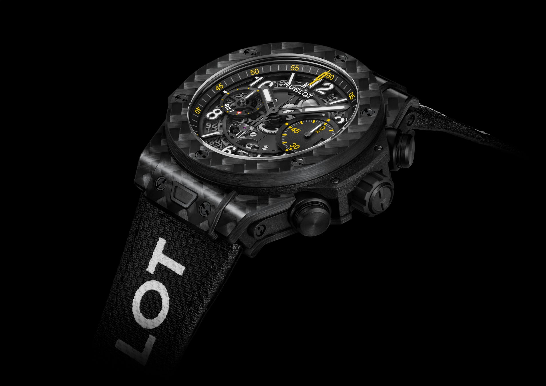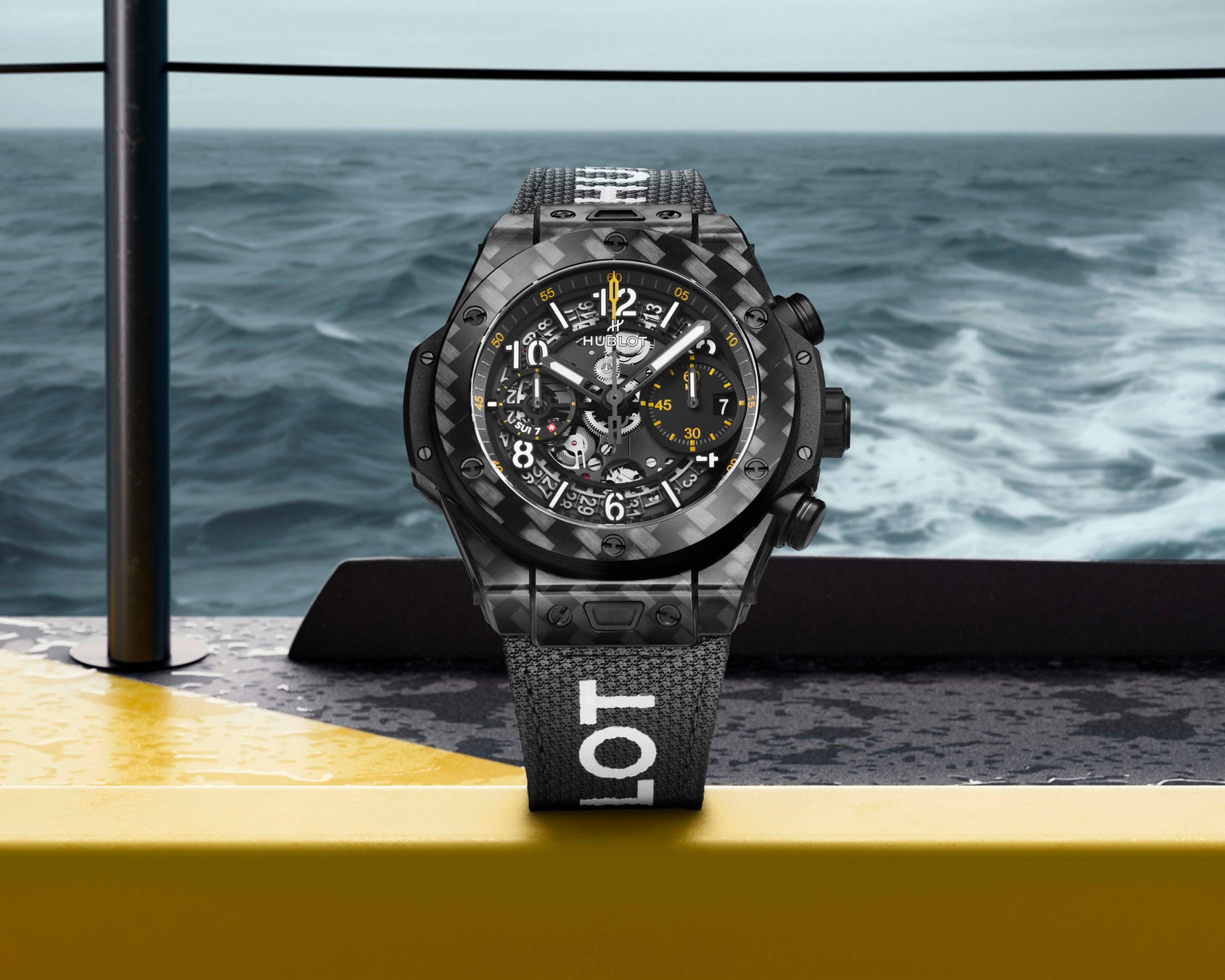 アラン・ロウラが所有するIMOCAヨットと同様、「ビッグ・バン ウニコ セーリングチーム」にはポリッシュ仕上げのカーボンファイバー製ケースを採用しています。頑丈で軽量なこの素材の選択は、人間と機械の融合、すなわちスキッパーと、そのボート、そしてレーシングパフォーマンスを正確に計るために不可欠なクロノメーターの融合を体現しています。