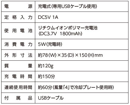 ・ペルチェ式の冷却プレート搭載。首や顔に当てるとひんやり気持ち良い。