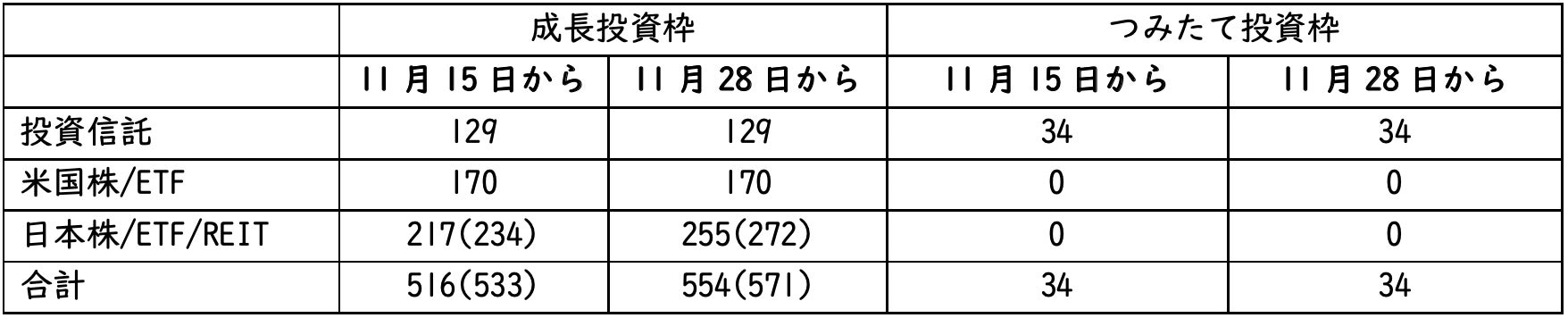投資信託、米国株/ETF、日本株/ETF/REIT全てを合わせた銘柄数は、11月28日から「PayPay資産運用」では569銘柄、「PayPay証券アプリ」では596銘柄となります。