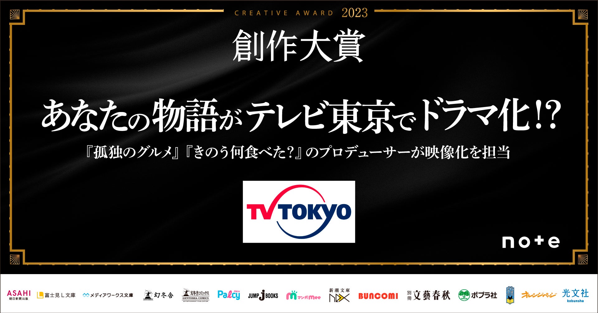 テレビ東京は第1回にも協賛いただき、2023年5月に受賞作品がTVドラマ化して放送されました。今回テレビ東京は、特定の部門に限らず、応募された作品を幅広く選考します。「テレビ東京映像化賞」を受賞した作品は、テレビ東京の大人気シリーズ『孤独のグルメ』や『きのう何食べた?』のプロデューサー阿部真士(あべまさし)さんが担当につき映像化を目指します。