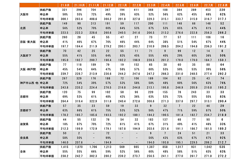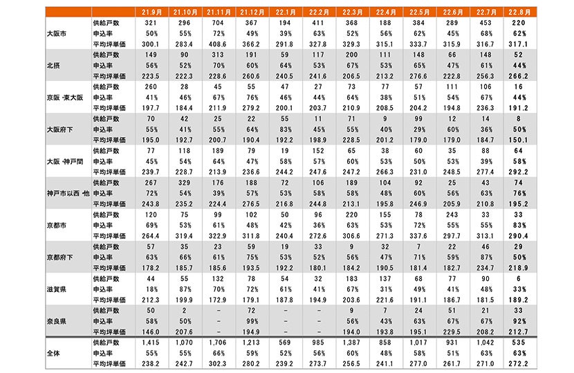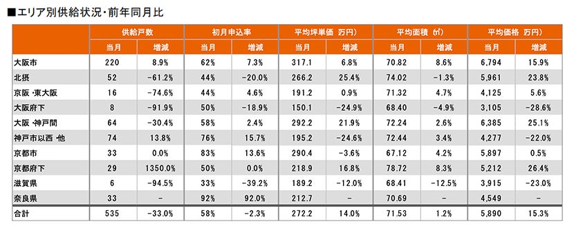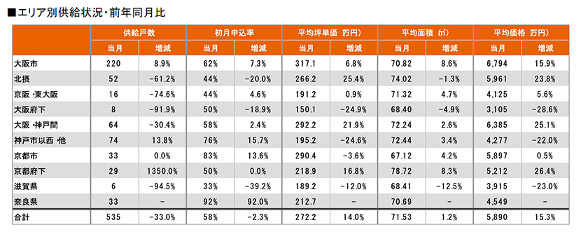 集計対象エリアは首都圏及び関西圏となっており、それぞれのエリア別相場情報、需給動向、