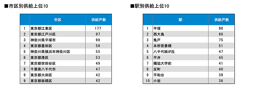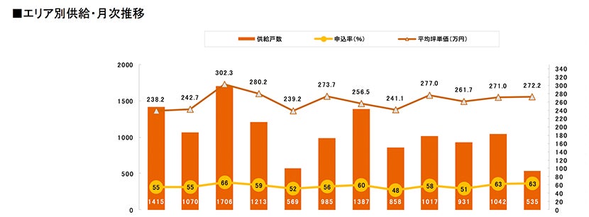 着工件数等を集計しました。また、前年同月における比較や市区別、駅別の供給ランキング等も算出しました。