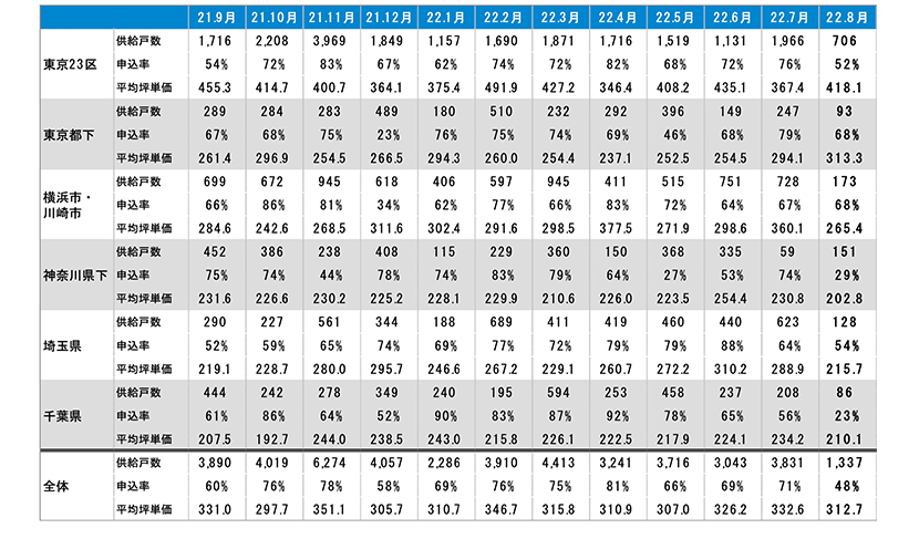 月例新築マンション動向発表~一都三県で供給戸数が減少(2022年8月度 分譲実績)|2022年11月号~