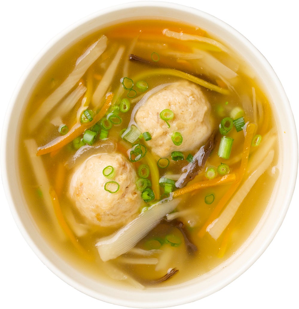 つくねとシャキシャキ千切り野菜のだしスープです。