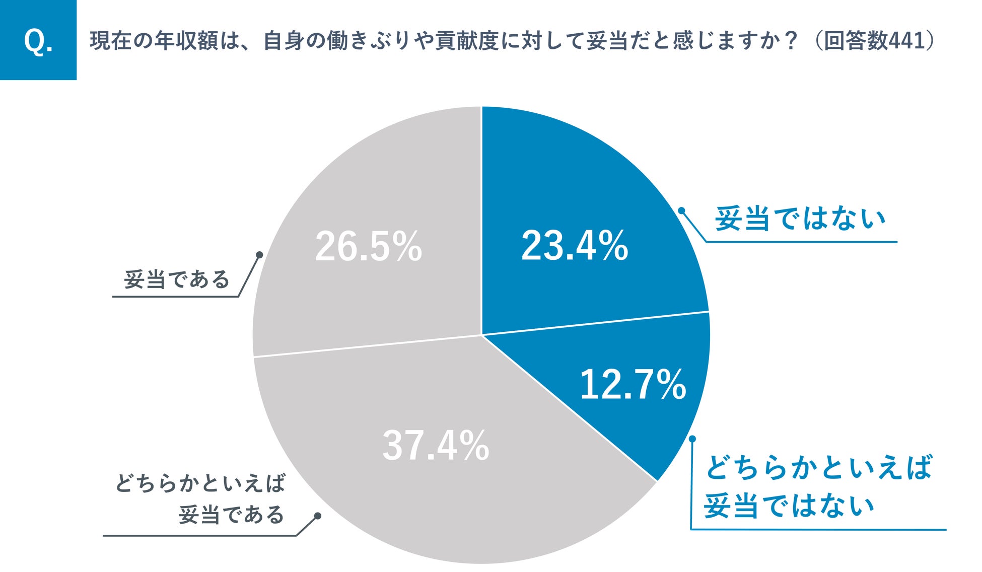 年収 2,000 万円以上の勤務医が 2 割以上の高収入である一方、自身の働きぶりや貢献度に対して年収額が「妥当ではない」と回答した医師は 23.4%、「どちらかといえば妥当ではない」と回答した医師は 12.7%となり 36.1%の医師は年収に満足していない結果となりました。