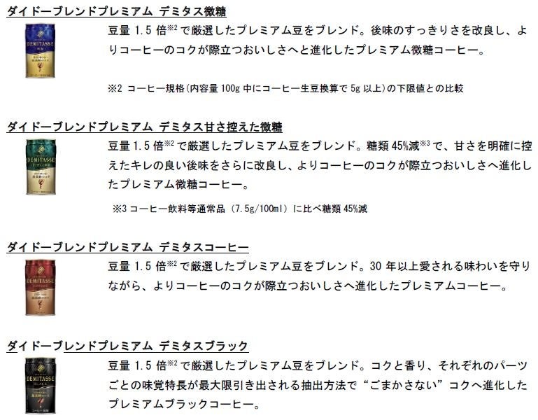 よりプレミアムに進化。デミタスシリーズ史上※最高峰のコク!「ダイドーブレンドプレミアム デミタス」シリーズ4品をリニューアル発売!