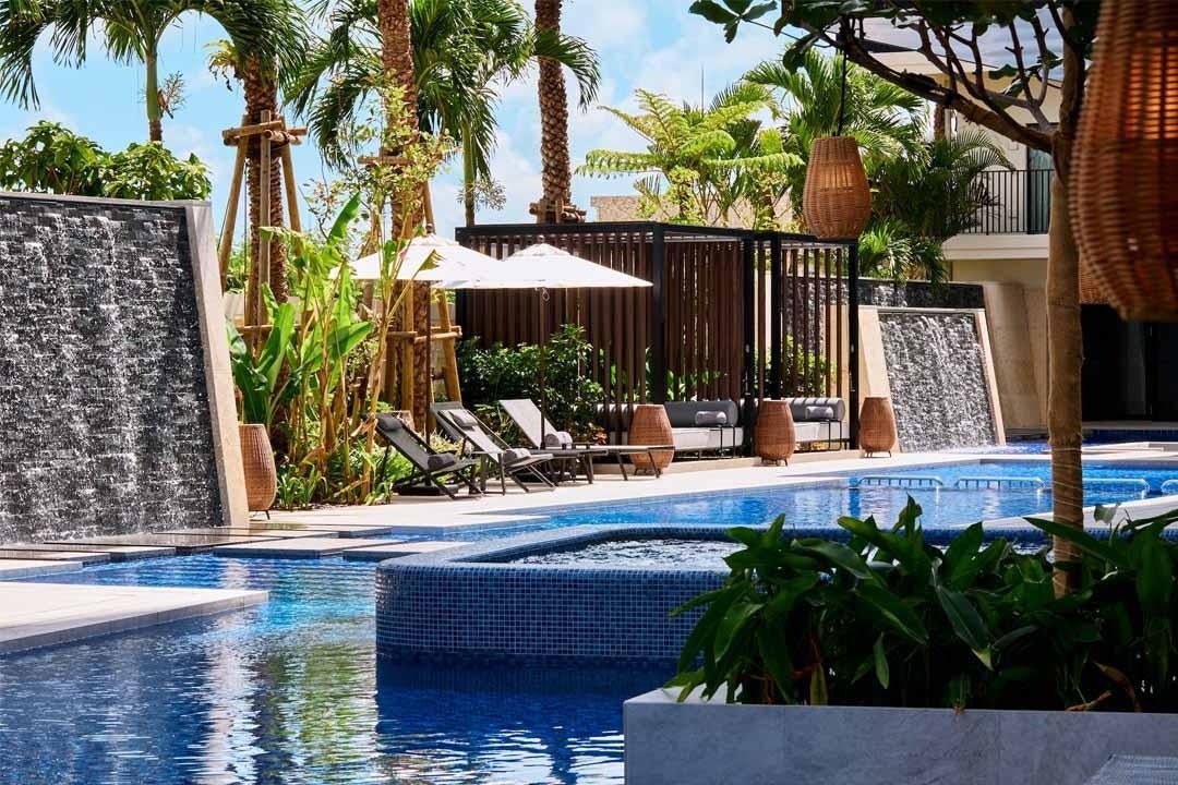 「seven x seven 石垣」では、2つの異なるプールがあります。1つ目がホテルフロントからつながる「ファミリープール」。ジャグジーやカバナも完備されており、家族連れでもゆったりと過ごせます。