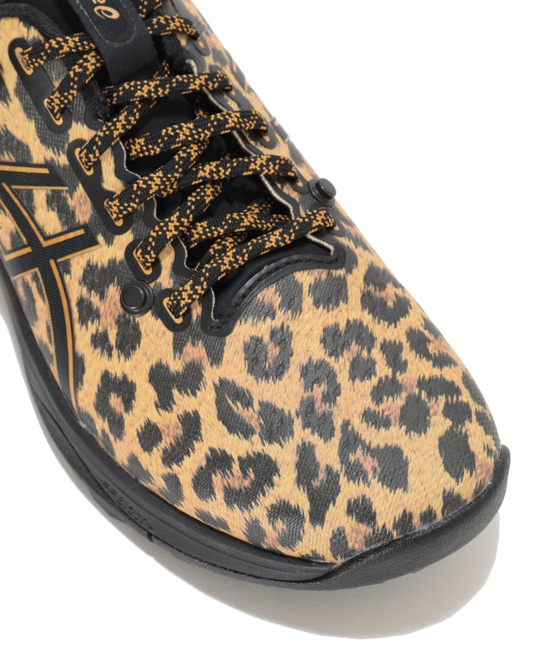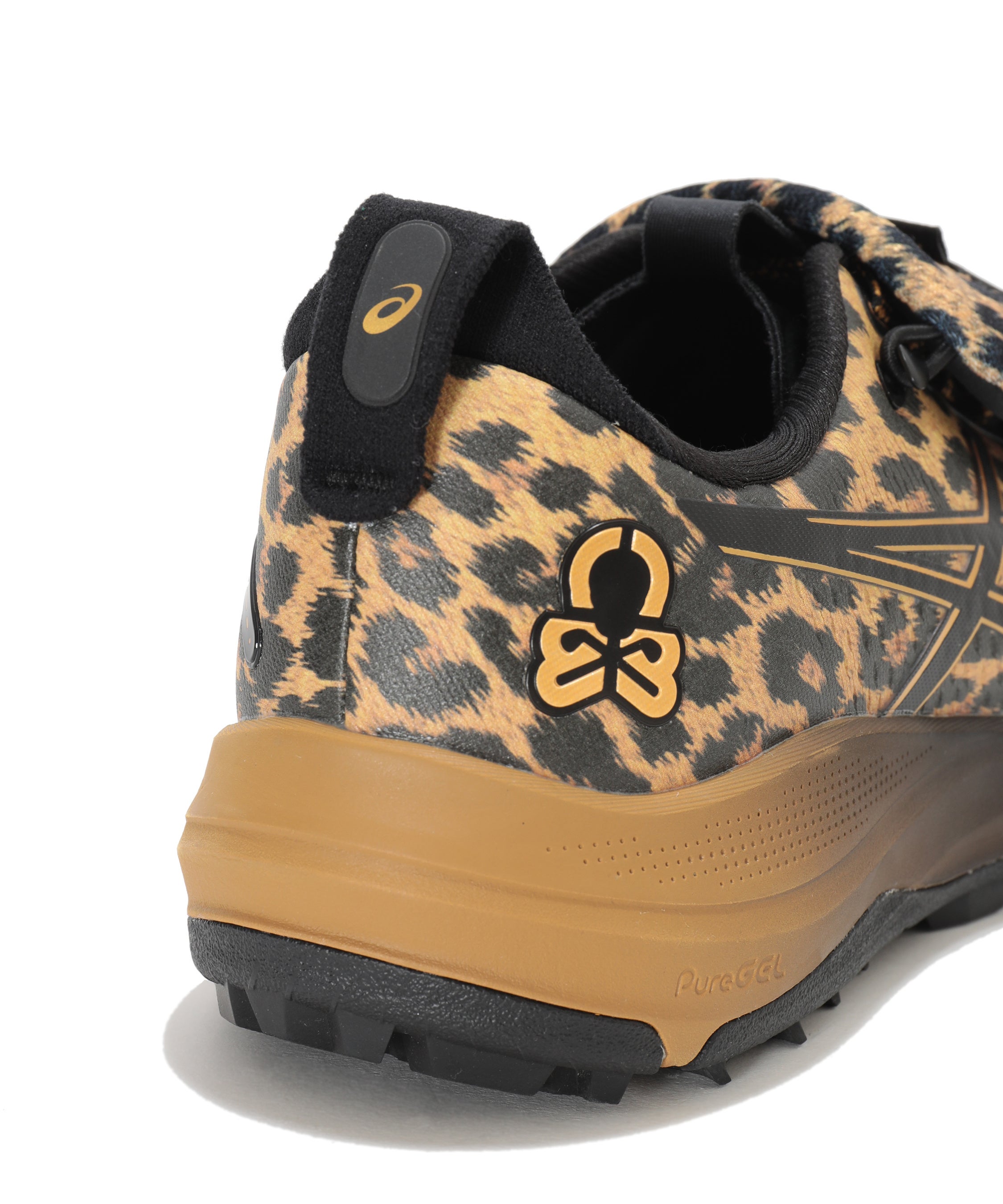 機能面では、ASICSが長年培ってきたソールテクノロジーを随所に採用。ミッドソールには軽量で優れたクッション性と高い反発性を兼ね備えた素材 「FF BLAST+(エフエフ ブラスト プラス)」 を搭載しました。さらに、かかと部には足にかかる負担を軽減する衝撃緩衝機能「PureGEL(ピュアゲル)」 を内蔵。18ホールを歩き通してもランニングシューズのような軽快さを追求し、スイング時のパフォーマンスを支える安定性と保護性能も緻密に設計されています。また、レオパードパターンを全面に施したアッパーには、ゴルフ特有の複雑な動きをサポートするために設計された エンジニアードメッシュを採用。部位ごとにメッシュの密度を変えることで必要な箇所を的確に補強し、優れた安定性と快適な足当たりを両立させました。メッシュ表面をフィルムで覆う加工を施すことで高い防水性と防汚性を確保し早朝の露や急な天候の変化、バンカーショット後でもシューズのコンディションを美しく保ちます。足元を支えるアウトソールには、独自開発の2種類のラバーを配した 「HYBRID ASICSGRIP」 を搭載。芝の上での強力なグリップ力と、アスファルト上での耐久性を同時に追求しました。